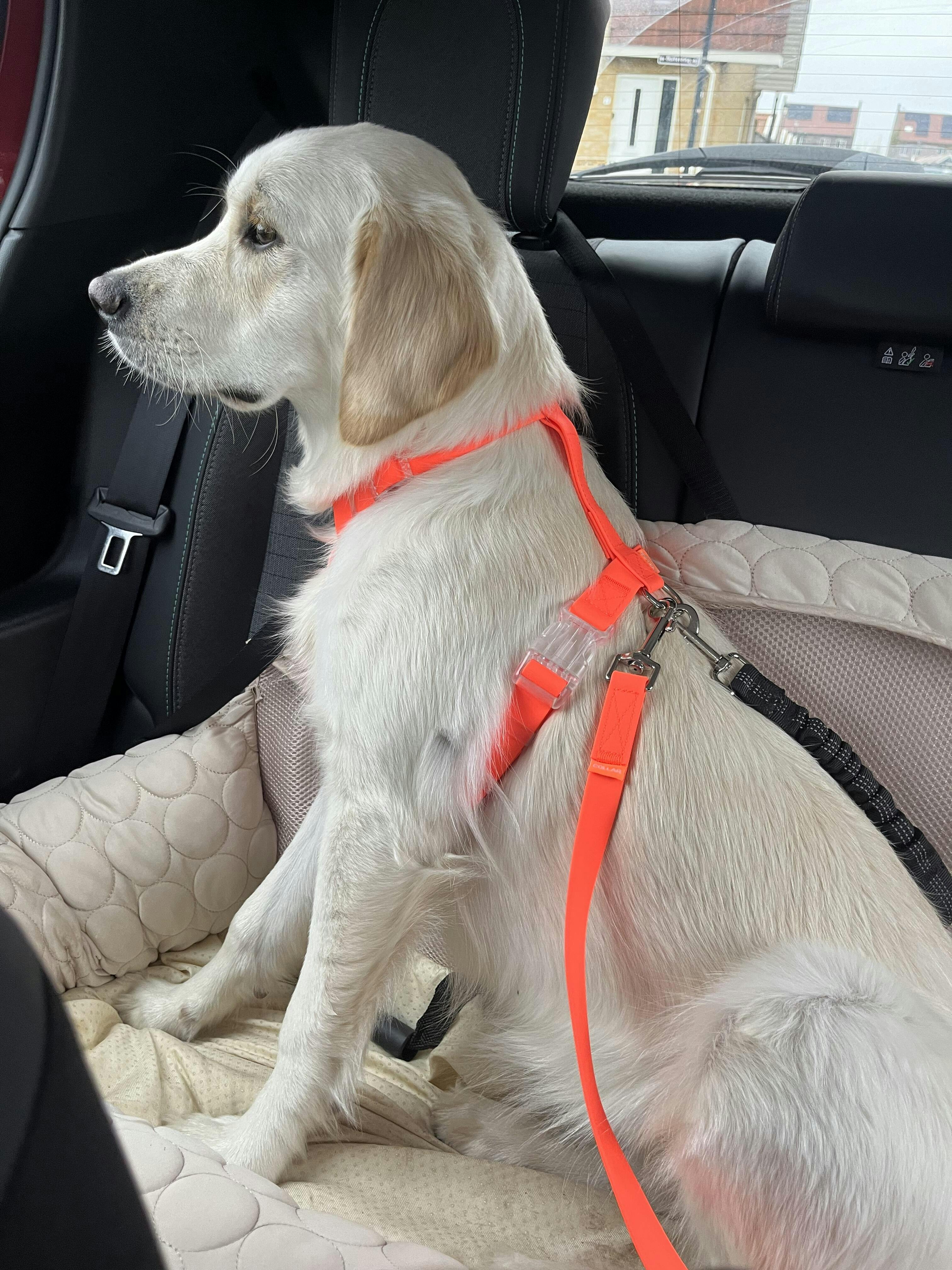 Echt een aanrader de halsband en riem. Mooie felle kleuren. Makkelijk te reinigen. Materiaal ligt fijn in de hand.